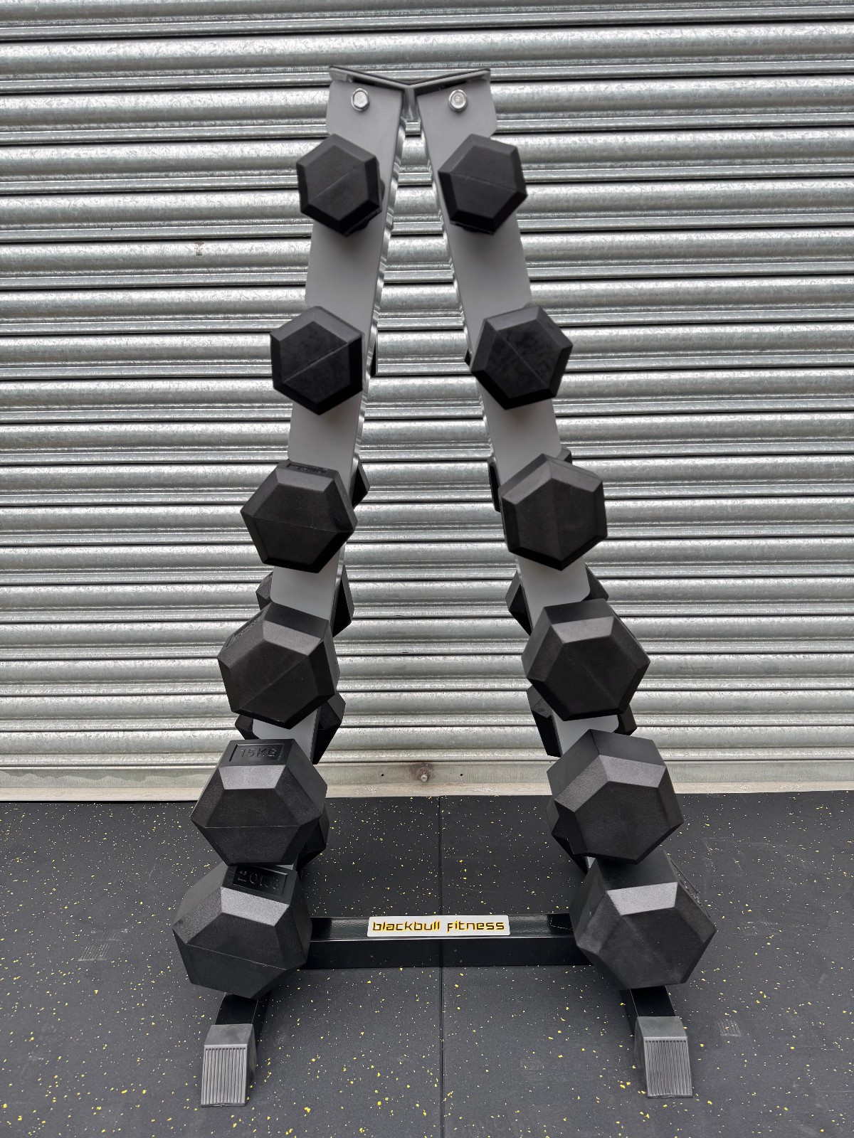 2.5KG – 20KG Rubber Hex Dumbbell Set with a Vertical Rack 6 Pairs